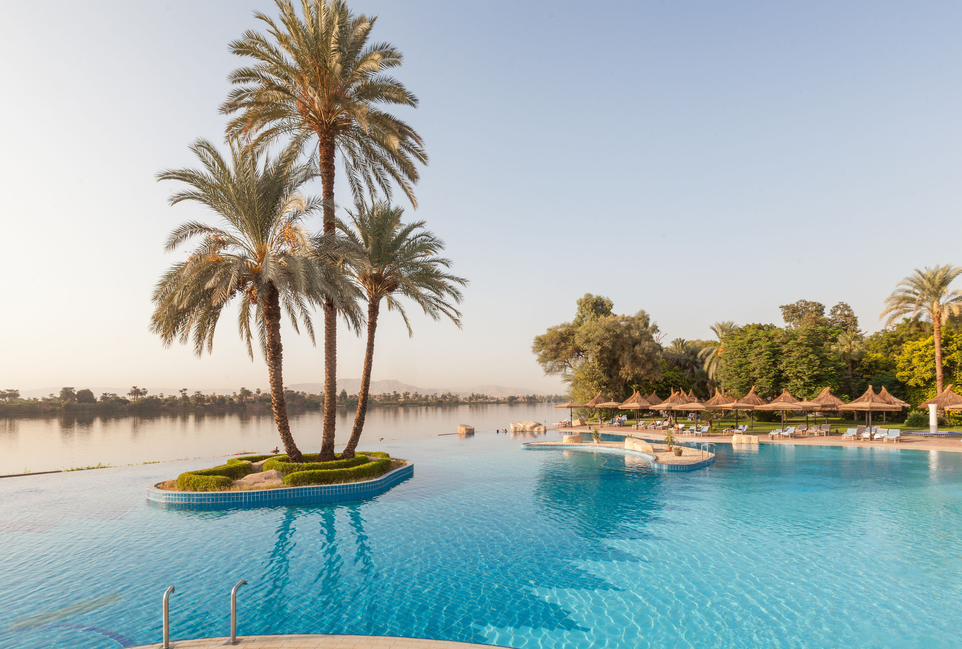 Dompel jezelf onder in de luxe van Jolie Ville Hotel & Spa Kings Island Luxor, een paradijselijk oord op een privé-eiland in de Nijl. Omringd door weelderige tuinen en met majestueuze uitzichten, biedt dit hotel een unieke ervaring met zijn verbluffende zwembaden en serene sfeer. Een plek waar ontspanning en avontuur hand in hand gaan.