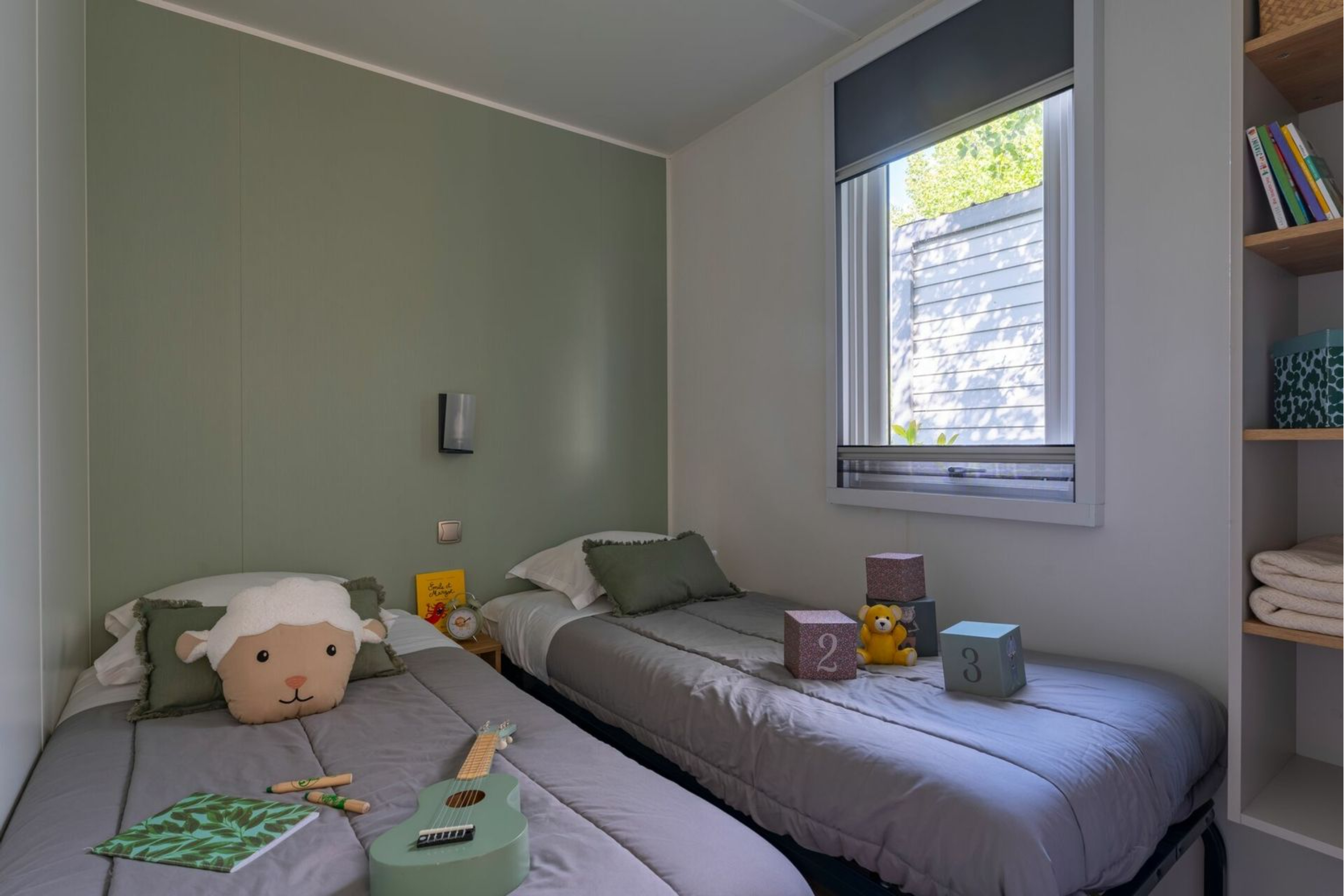 Slaapkamer 2: Twee eenpersoonsbedden (80 × 190 cm)