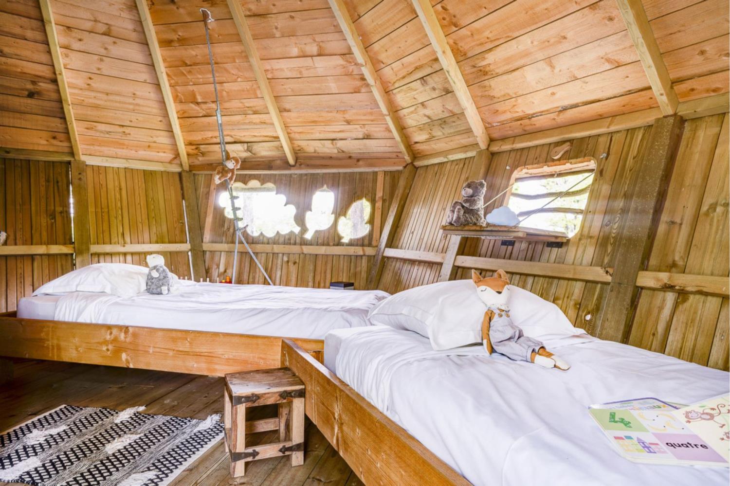 Breng uw verblijf naar nieuwe hoogten in ons charmante tree house, een heerlijk eigenzinnige accommodatie, perfect voor avontuurlijke gezinnen! 3 meter boven de grond biedt het terras met tafel en stoelen een unieke natuurlijke setting voor een ontspannen ontbijt te midden van het groene landschap van camping Château des Marais.