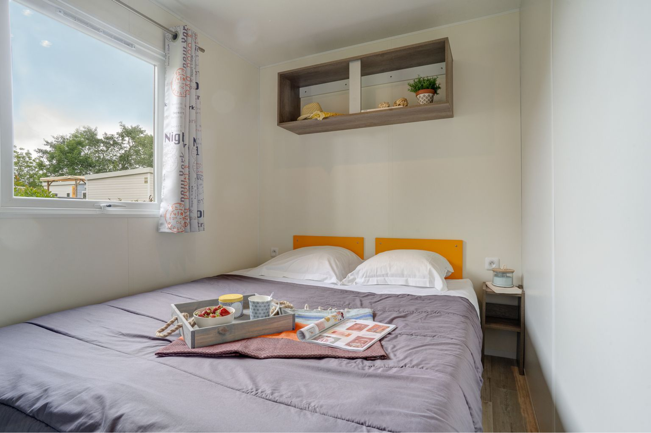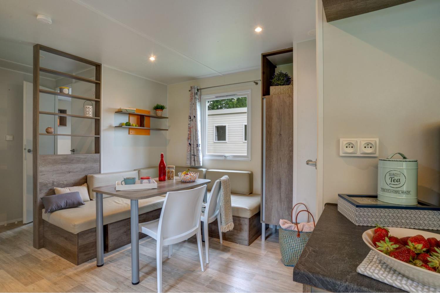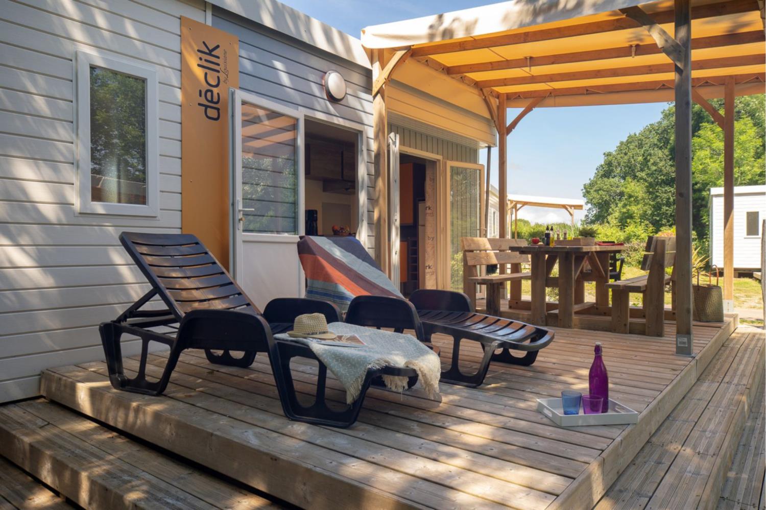 Stap binnen in onze charmante stacaravan, ontworpen voor comfort en ontspanning tijdens uw gezinsvakantie. Het goed uitgeruste interieur biedt drie gezellige slaapkamers en plaats voor maximaal zeven personen. De woonruimte is perfect om samen te komen, terwijl het houten terras met schaduwdoek iedereen uitnodigt om rond de tuintafel te genieten van lokale Bretonse specialiteiten. Voor pure ontspanning kunt u op de ligstoelen van de tuinset gaan liggen en van de zon genieten.