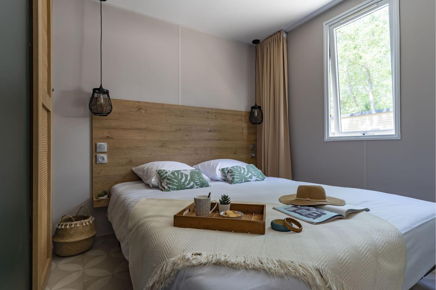 De slaapmogelijkheden omvatten een hoofdslaapkamer met tweepersoonsbed (160x200 cm) en kledingkast, en twee extra slaapkamers, elk met twee eenpersoonsbedden (80x190 cm) en kledingkast - ideaal voor kinderen of vrienden. De badkamer beschikt over douche, wastafel en verwarming, met een apart toilet voor extra gemak.