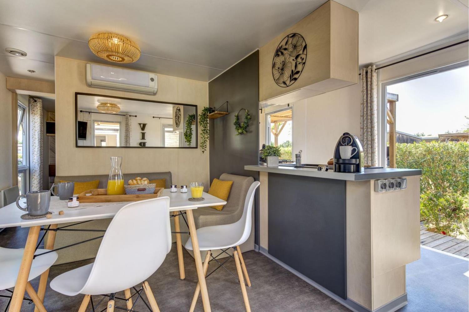 De accommodatie beschikt over een comfortabele woonkamer met een bank, een eettafel en stoelen, een televisie en verwarming. De volledig uitgeruste keuken omvat servies en keukengerei, een gootsteen, een afzuigkap, een vaatwasser, een waterkoker, een elektrisch koffiezetapparaat, vier gaskookpitten, een magnetron en een koel-/vriescombinatie.