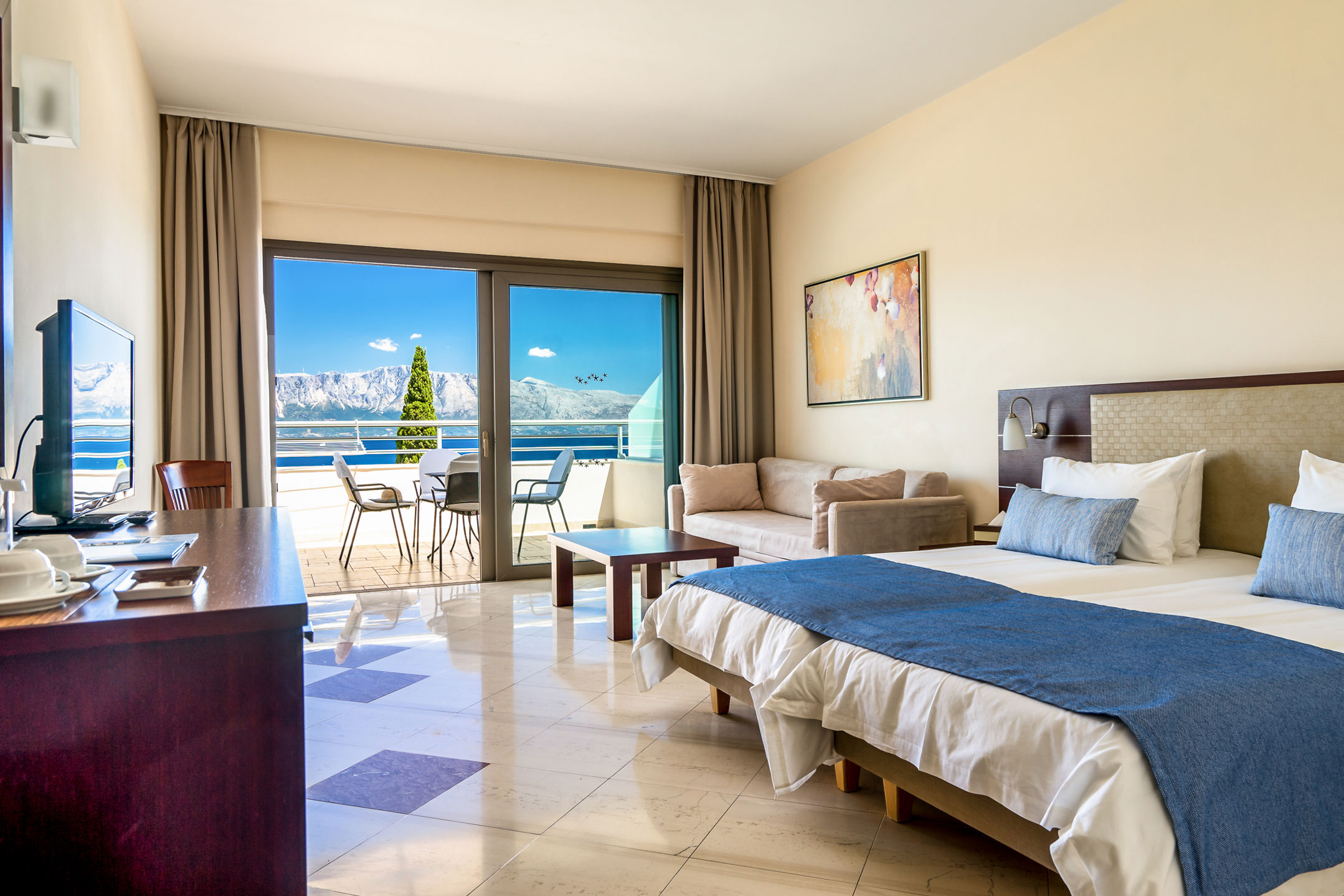 Direct naar: * Ligging () * Faciliteiten () * Restaurants & Bars () * Hotelkamers () * Sport & Ontspanning () * Kinderfaciliteiten () * Zwembaden () * Verzorging () Ligging: Porto Galini * Direct aan het kiezelstrand van het hotel * Op circa 5 kilometer van Nidri * Dichtstbijzijnde restaurants op circa 2 kilometer * Dichtstbijzijnde bars en winkels op circa 5 kilometer * Gelegen in prachtige heuvelachtige omgeving Faciliteiten * 139 kamers, verdeeld over 9 gebouwen * 3 liften * 24-uursreceptie * Bagageruimte * Lobby * Fraaie tuin * Gratis wifi in de lobby en bij het zwembad * Mini supermarkt* * Was- en droogservice* * Privé parkeergelegenheid * Tegen betaling Restaurants & bars * 1 buffetrestaurant * 2 à-la-carteretaurants (vooraf reserveren, tegen betaling) * 2 bars; poolbar en lobbybar (tegen betaling) * Roomservice (tegen betaling) Hotelkamers * Standaardkamer (1-3 personen) * Oppervlakte circa 15-25 m² * Airconditioning * Televisie * Telefoon * Minibar* * Kluisje * Koffie- en theefaciliteiten * Gratis wifi * Douche * Toilet * Föhn * Slippers * Balkon of terras met zitje * Tegen een meerprijs boekbaar met zijzeezicht (2-3 personen) * Tegen betaling * Superiorkamer (2-3 personen) * Oppervlakte circa 20-28 m² * Beschikt over dezelfde faciliteiten als de standaardkamers * Er zijn kamers met een douche of een bad of beide * Tegen een meerprijs boekbaar met zijzeezicht (2-3 personen) * Suite (2-4 personen) * Oppervlakte circa 35-45 m² * Woon-/slaapkamer en aparte slaapkamer (2 ruimtes) * Beschikt over dezelfde faciliteiten als de standaardkamer * De Suites hebben een bad en douche * Tegen een meerprijs boekbaar met zeezicht (2-4 personen) Sport & Ontspanning * Fitness * Beachvolleybal * Tafelvoetbal* * Biljart* * Tafeltennis * Tennis * Gameroom* * Kano's en supboards* * Turks bad* * Sauna* * Bubbelbad* * Massages* * Schoonheidsbehandelingen* * 2 x per week livemuziek *Tegen betaling Kinderfaciliteiten * 2 kinderzwembaden * Miniclub (4-12 jaar, 7 dagen per week) * Speeltuin * Babybedjes op aanvraag Zwembaden * 2 zwembaden * 2 kinderzwembaden * Binnenbad (tegen betaling) * Ligbedden met matrasjes en parasols gratis verkrijgbaar bij de zwembaden en op het strand * Gratis badhanddoekenservice Verzorging zomer : Porto Galini * Verblijf o.b.v. Logies & Ontbijt: ontbijt in buffetvorm * Tegen een betaling verblijf je op basis van Halfpension: ontbijt en diner in buffetvorm Extra informatie: Bij deze pakketreis is een huurauto inbegrepen, daarom vervalt de transfer van de luchthaven naar de accommodatie en vice versa. De reisleiding, aanwezig op de luchthaven, verwijst je naar het autoverhuurbedrijf en geeft je een welkomstenvelop. Is je reisgezelschap te groot voor één auto? Boek dan een tweede auto bij. Voor prijzen en beschikbaarheid kun je contact opnemen met ons Contact Center. Informatie & Voorwaarden Huurauto ()