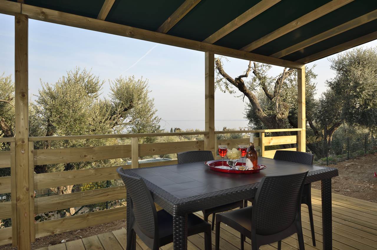 De LAKE VIEW TERRACE stacaravan biedt plaats aan maximaal 5 gasten en beschikt over een comfortabele veranda met een prachtig uitzicht op het Gardameer. Deze moderne accommodatie is koel en aangenaam beschaduwd door lindebomen en populieren, terwijl ze dankzij de ochtendzon die recht voor de woning opkomt toch licht en luchtig blijft.