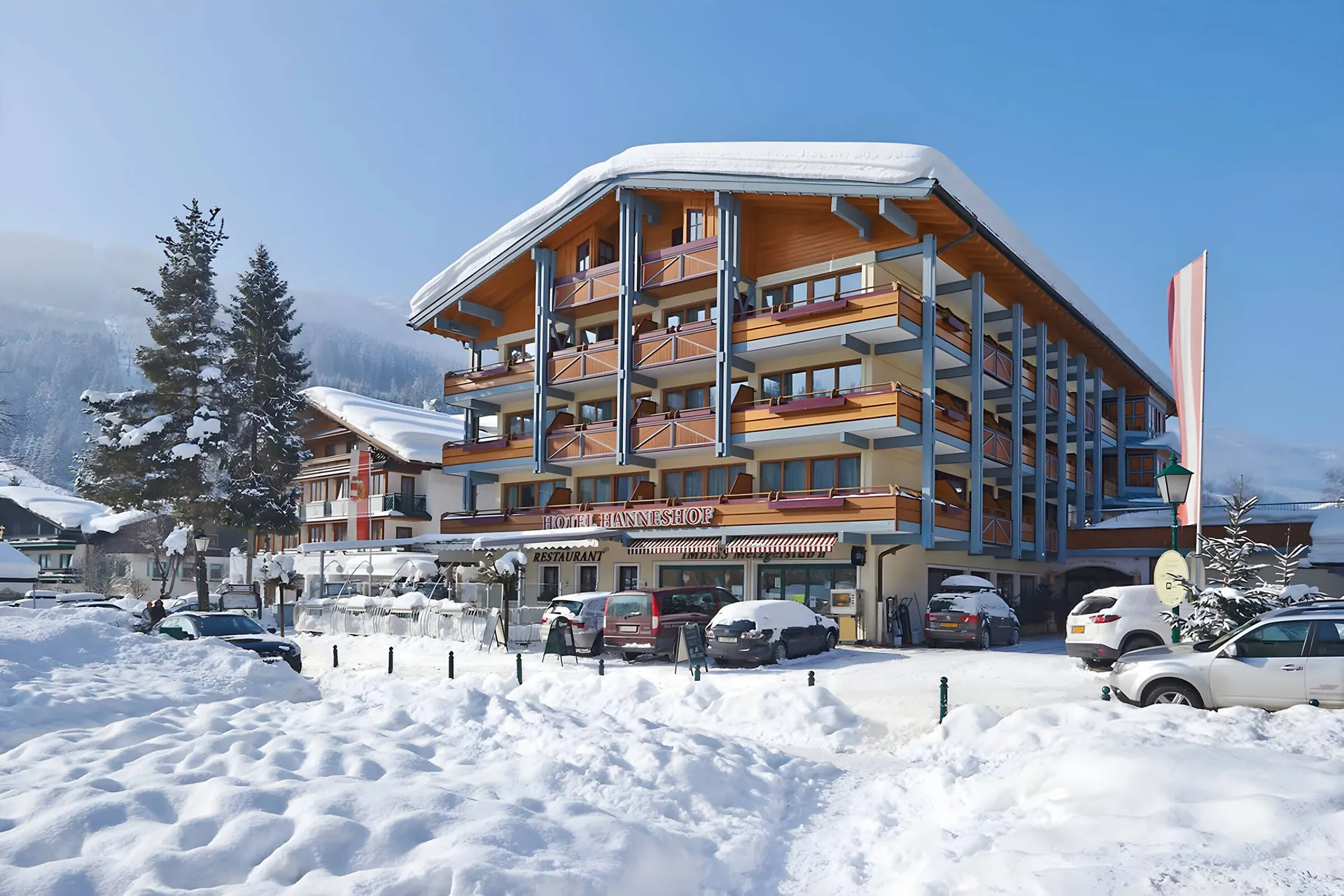 4-sterrenhotel gelegen in het centrum en dichtbij de skilift van Filzmoos. In de ochtend kun je genieten van een uitgebreid ontbijtbuffet, om vervolgens de piste op te gaan voor een actieve dag. In de middag kun je in het restaurant terecht voor een après ski-snack en ben je in de gelegenheid om heerlijk te genieten in het wellnesscentrum (ca. 200 m²) met sauna's, stoombad en een ontspanningsruimte. 's Avonds staat er een 4-gangendiner op jou te wachten inclusief saladebuffet. Kortom, in Hotel Hanneshof kom je zeker niets te kort tijdens jouw wintersportvakantie! Gasten waarderen dit hotel vanwege het vriendelijke personeel, de ruime kamers en de locatie. Hotel Hanneshof bestaat uit twee hoofdgebouwen (Hanneshof en Sonnenhügel) en een dependance. De kamers liggen verspreid over deze gebouwen. In de hoofdgebouwen bevinden zich de faciliteiten (restaurant, wellness, zwembad, etc.). Je hoort ter plaatse in welk hoofdgebouw je precies verblijft (Hanneshof en Sonnenhügel), indien je een kamer in het hoofdgebouw geboekt hebt.