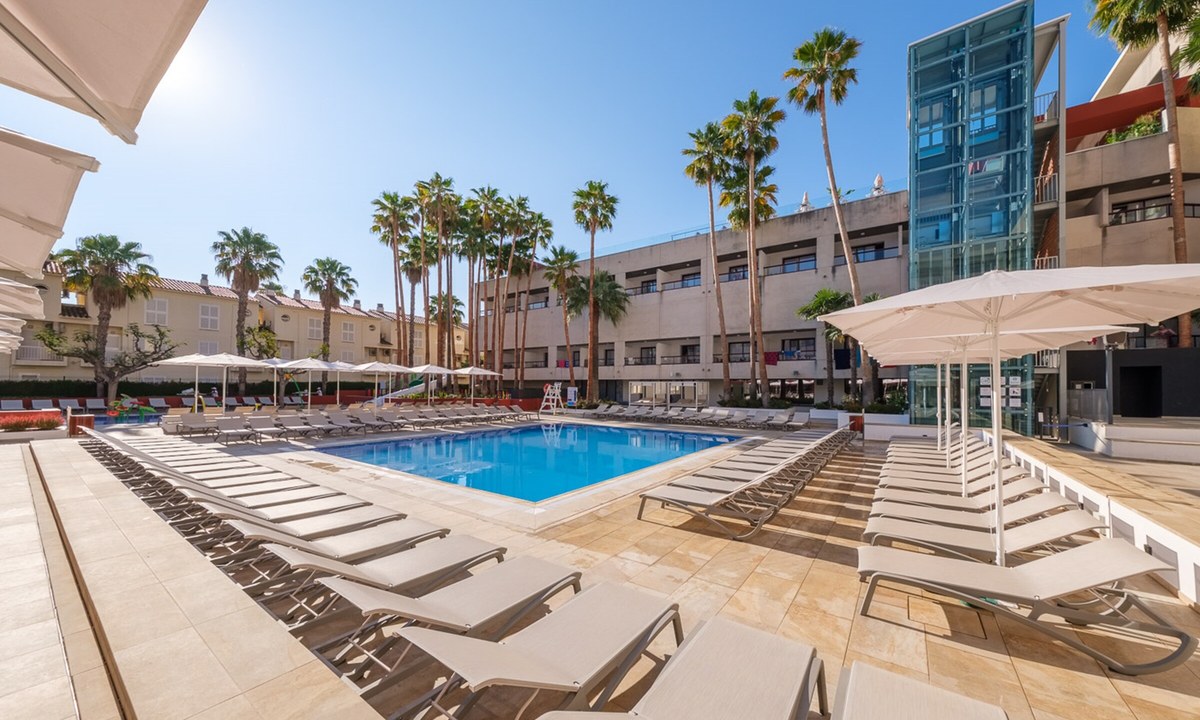 Hotel Estival Park Almaris in La Pineda.Dicht bij strand en boulevard van La Pineda. Zwembad met waterspeeltoestellen. Binnenzwembad en fitness.