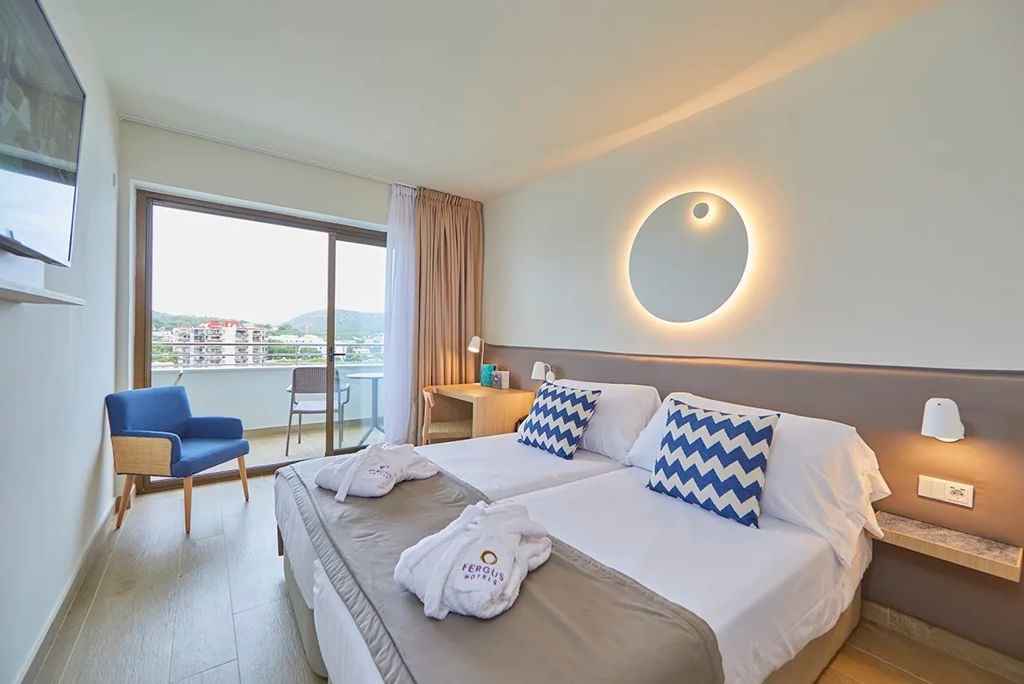 Reisperiode: 16/04/2026 • 7 nachtennVertrek: AMS → PMInVerzorging: Logies en ontbijtnKamer: Standaardkamern Direct naar: * Ligging () * Faciliteiten () * Restaurants & bars () * Zwembaden () * Hotelkamers () * Activiteiten & ontspanning () * Verzorging () *   Ligging Fergus Style Tobago in Palmanova * Gelegen in de baai van Palmanova * Ca. 20 meter van het strand * Centrum van Palmanova op ca. 1 kilometer * In de directe omgeving winkels en restaurants * Bushalte op ca. 100 meter Faciliteiten * Only Adult hotel; minimale leeftijd van de gasten is 16 jaar * 2 gebouw met 9 verdiepingen * In elk gebouw is een lift aanwezig * 260 kamers * 24-uursreceptie * Lobby * Bagageruimte * Wifi * Roomservice * Wasservice* * Privé parkeergelegenheid* *Tegen betaling Restaurants & bars * 1 buffetrestaurant * 2 à-la-carterestaurants (vooraf reserveren) * 3 bars Zwembaden * 2 buitenzwembaden * Zonneterras * Ligbedden en parasols gratis (zwembad) * Gratis badhanddoekenservice Hotelkamers * Standaardkamer (1-2 personen) * Ca. 20 m² * Telefoon* * Airconditioning * Televisie * Minibar* * Kluisje * Nespresso apparaat * Wifi * Douche * Toilet * Föhn * Balkon met zitje * Tegen een meerprijs boekbaar met zeezicht *Tegen betaling Activiteiten & ontspanning * Fitness (buiten op binnenplaats/terras) * Massages* * Meerdere avonden animatie *Tegen betaling Verzorging Zomer: Fergus Style Tobago in Palmanova * Verblijf o.b.v. Logies & Ontbijt: ontbijt in buffetvorm * Tegen een meerprijs verblijf je o.b.v. Halfpension: Ontbijt in buffetvorm en diner in buffetvorm Extra informatie Bij deze pakketreis is een huurauto inbegrepen, daarom vervalt de transfer van de luchthaven naar de accommodatie en vice versa. De reisleiding, aanwezig op de luchthaven, verwijst je naar het autoverhuurbedrijf en geeft je een welkomstenvelop. Is je reisgezelschap te groot voor één auto? Boek dan een tweede auto bij. Voor prijzen en beschikbaarheid kun je contact opnemen met ons Contact Center. Informatie & Voorwaarden Huurauto ()