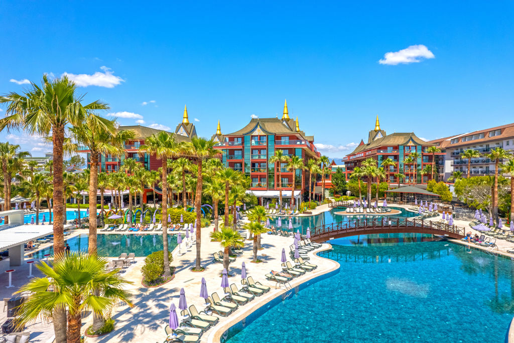 Stap binnen in de wereld van Siam Elegance, waar Turkse zon en Thaise elegantie samenkomen. Dit sfeervolle vijfsterrenhotel ligt direct aan het strand in het rustige Bogazkent, vlak bij Belek. De bijzondere Aziatische stijl zie je terug in de tuinen,..