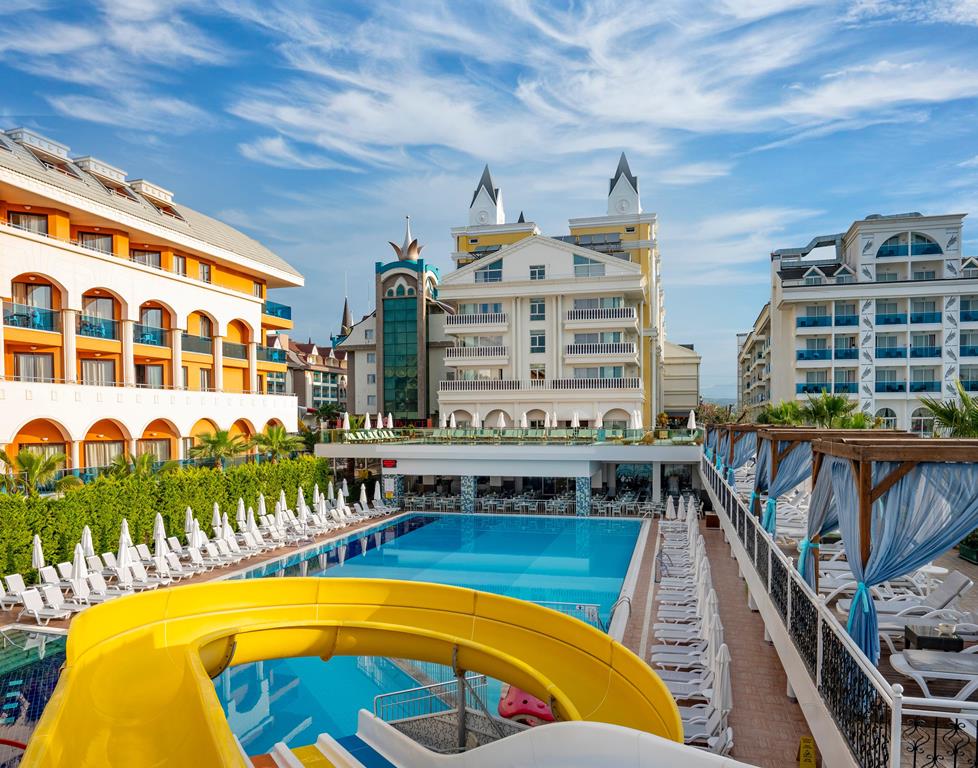 De naam zegt het al het is een droomwereld aan de Turkse Rivièra. Hier geniet je van de allerlekkerste internationele en authenieke Turkse gerechten. Alles All Inclusive. Met de gratis shuttle lig je binnen twee minuten languit op het strand. Je kinderen vermaken zich ook perfect in het zwembad. Bommetje! Ben je toe aan wat meer rust, dan is het Adults Only zwembad een goede keuze. Of verwen jezelf in de spa en geniet van de sauna en een Turks stoombad. Dat de zon bijna onder gaat, betekent niet dat je dag al voorbij is ... Geniet samen van livemuziek en spectaculaire shows.