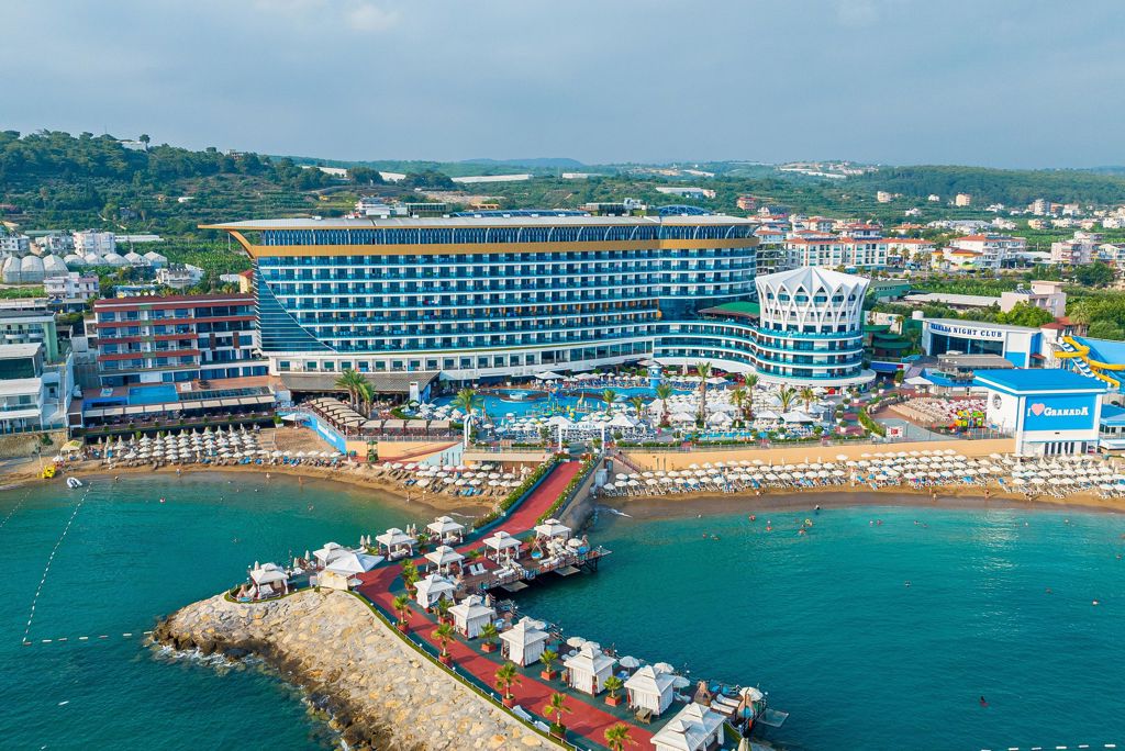 Zomer Wanneer je tussen 20-04-2026 en 31-10-2026 in deze accommodatie verblijft, is onderstaande informatie van toepassing. * Ligging * Gelegen aan het privéstrand * Zandstrand * Ligbedden met matrasjes * Parasol * Dichtstbijzijnde winkel op circa 2 kilometer * Dichtstbijzijnde restaurant op circa 2 kilometer * Dichtstbijzijnde bar op circa 2 kilometer * Alanya op circa 30 kilometer * Side op circa 34 kilometer * Manavgat op circa 30 kilometer * Bushalte op circa 200 meter * Taxistandplaats op circa 200 meter * Algemeen & faciliteiten * Kindvriendelijk complex * 1 gebouw * Maximaal 9 verdiepingen * 598 kamers * Receptie * 24 uur per dag * Lobby met zitgedeelte * 6 liften * Lift in elk gebouw * Bagageruimte * Wifi in alle openbare ruimtes * Meerdere winkels * Minimarkt * Wasservice tegen betaling * Doktersservice tegen betaling * Tuin * Privé parkeergelegenheid * Restaurants & bars * Buffetrestaurant * 4 à-la-carterestaurants * All day dining restaurant (vooraf reserveren) tegen betaling voor alle gasten * 3 snackbars * Roomservice tegen betaling * 9 drinkgelegenheden * 9 bars * Activiteiten & ontspanning * Aerobics * Beachvolleybal * Biljart tegen betaling * Bowling tegen betaling * Darts * Fitness * Midgetgolf * Tafeltennis * Watersporten tegen betaling * Spafaciliteiten * Sauna * Turks stoombad * Bubbelbad binnen tegen betaling * Massages tegen betaling * Schoonheidsbehandelingen tegen betaling * Discotheek * Gameroom toegang tegen betaling * Animatie voor volwassenen en kinderen * 7 keer per week * Shows voor volwassenen en kinderen * 2 keer per week * Livemuziek * Zwembaden * 3 buitenzwembaden * Relaxbad * Eén van deze zwembaden heeft 3 glijbanen * Open in het zomerseizoen * Open tussen * Buitenzwembad voor kinderen * Binnenzwembad * Verwarmd * Binnenzwembad voor kinderen * Zonneterras * Ligbedden met matrasjes * Parasol * Badhanddoekenservice * Kinderfaciliteiten * Mini club (4-12 jaar) * 7 keer per week * Minidisco * Buitenspeeltuin * Verzorging * Ultra All Inclusive * Ontbijt in buffetvorm (07.00-10.00 uur) * Laat ontbijt in buffetvorm (10.00-11.00 uur) * Lunch in buffetvorm (12.30-14.00 uur) * Diner in buffetvorm (19.00-21.00 uur) * Snacks (12.00-17.00 uur) * Koffie, thee & koekjes (10.00-20.00 uur) * IJs (10.00-20.00 uur) * Middernachtsnack (22.00-06.00 uur) * Selectie lokale (non-)alcoholische drankjes (08.00-00.00 uur) * Tegen betaling: dineren in één van de à-la-carterestaurants, drankjes in flessen, drankjes na 00.00 uur, import drankjes, verse vruchtensappen, energiedranken en roomserviceHotelkamers * 2-persoonskamer Voordeel DE * Locatie kan afwijken ten opzichte van andere kamertypes * Oppervlakte circa 26 m² * Landzicht * Airconditioning * Kluisje * Satelliettelevisie * Telefoon tegen betaling * Eet- en drinkfaciliteiten * Koffie- en theefaciliteiten * Minibar * Dagelijks aangevuld met water en frisdrank * Badkamer douche, toilet, föhn en badslippers * Wifi * Geen balkon * 2-persoonskamer Standaard Landzicht DZL * Oppervlakte tussen 27 en 36 m² * Landzicht * Eén grote kamer * Airconditioning * Kluisje * Satelliettelevisie * Telefoon * Eet- en drinkfaciliteiten * Koffie- en theefaciliteiten * Minibar * Dagelijks aangevuld met water en frisdrank * Badkamer douche, toilet, föhn, badjassen en badslippers * Wifi * Balkon (zitje) * 2-persoonskamer Standaard Zeezicht DZM * Oppervlakte tussen 27 en 36 m² * Zeezicht * Airconditioning * Kluisje * Satelliettelevisie * Telefoon tegen betaling * Eet- en drinkfaciliteiten * Koffie- en theefaciliteiten * Minibar * Dagelijks aangevuld met water en frisdrank * Badkamer douche, toilet, föhn, badjassen en badslippers * Wifi * Balkon (zitje) * Familiekamer Standaard Zeezicht FZM * Oppervlakte circa 50 m² * Zeezicht * Meerdere slaapkamers * Meerdere slaapkamers met meerdere slaapplaatsen * Meerdere slaapkamers met meerdere slaapplaatsen * Airconditioning * Kluisje * Satelliettelevisie * Telefoon tegen betaling * Eet- en drinkfaciliteiten * Koffie- en theefaciliteiten * Minibar * Dagelijks aangevuld met water en frisdrank * Badkamer douche, toilet, föhn, badjassen en badslippers * Wifi * Balkon (zitje) * Familiekamer Duplex Landzicht FFL * Oppervlakte tussen 65 en 75 m² * Landzicht * In duplexstijl * Airconditioning * Kluisje * Satelliettelevisie * Telefoon tegen betaling * Eet- en drinkfaciliteiten * Koffie- en theefaciliteiten * Minibar * Dagelijks aangevuld met water en frisdrank * 2 badkamers * Wifi * Balkon of terras (zitje) * Child Friendly Room CF1